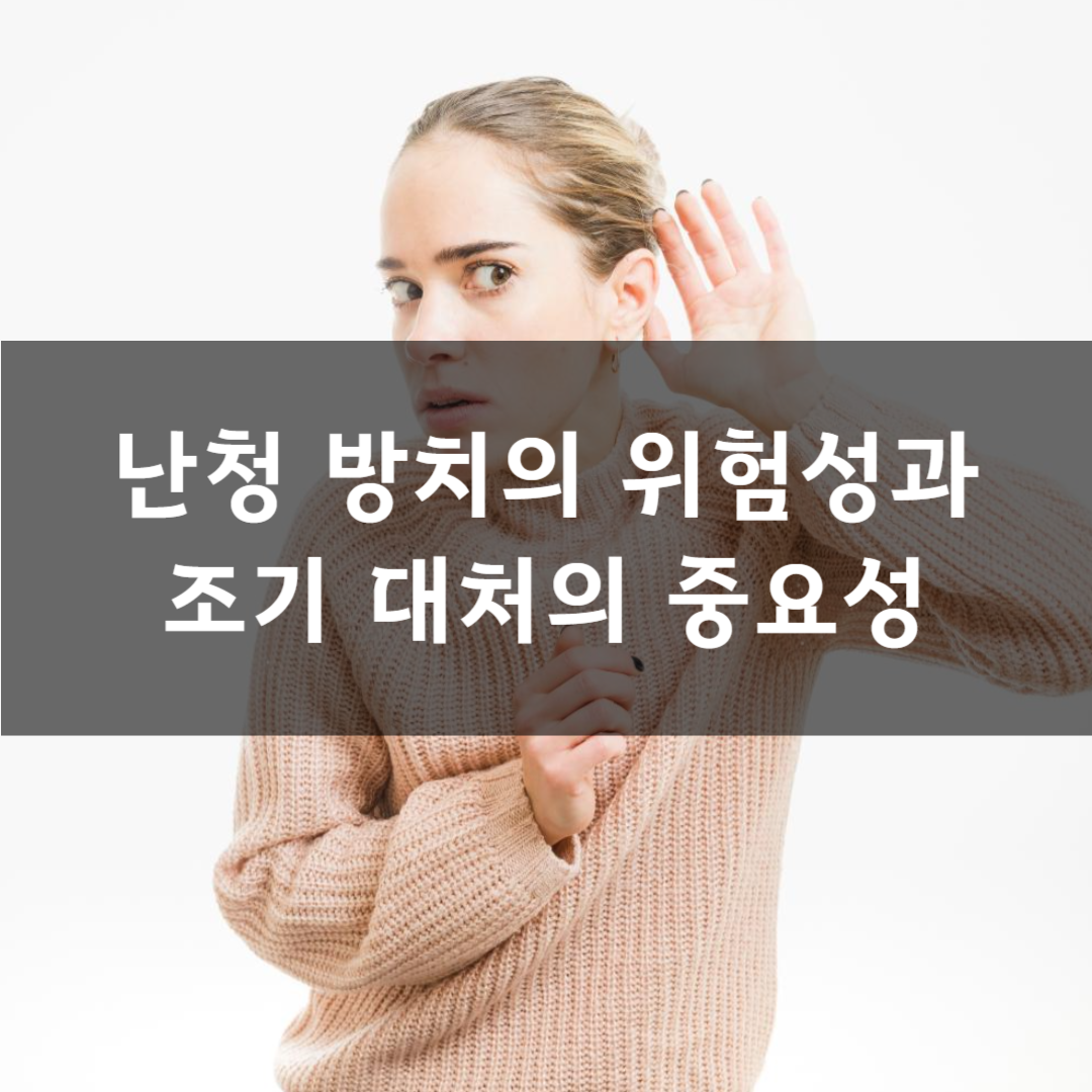 난청이 의심된다면 시간을 미루지 말고 바로 정확한 청력검사를 받아보시기 바랍니다. 난청을 초기에 발견하면 보청기 등의 치료 효과도 그만큼 높아지고, 난청으로 인하여 발생할 수 있는 불편과 위험을 크게 줄일 수 있습니다. 청각 건강은 우리 삶의 질과 직결되는 매우 중요한 문제입니다. 만약 난청이 의심된다면 신속히 대처하여 건강한 청력을 유지하시기 바랍니다.