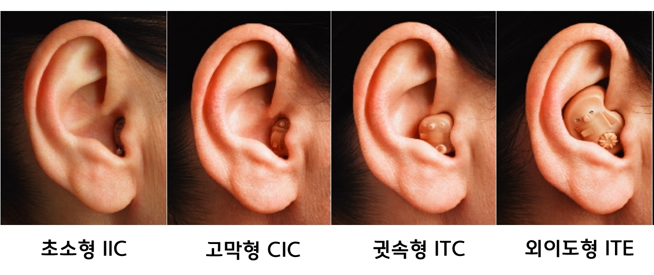 귓속형은 개인의 귓본을 떠서 맞춤형으로 제작이 되는데 크기에 따라 초소형 보청기 IIC, 고막형 보청기 CIC, 귓속형 보청기 ITC, 외이도형 보청기 ITE로 구분이 됩니다. 크기에 다라 보청기의 출력이 달라지면 보청기 기능에도 차이가 있습니다.