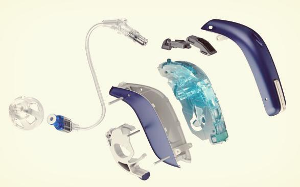 * 보청기의 모든 부품이 귀 뒤의 본체 안에 위치하게 되고 소리는 이어튜브를 이용해 고막 쪽으로 전달이 됩니다.