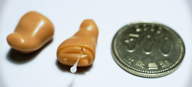 * 두개의 마이크가 들어갈 수 있고 조절용 스위치도 달 수 있는 크기의 보청기입니다.