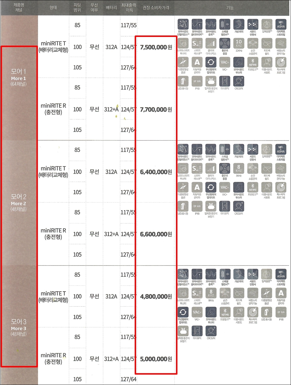이처럼 포낙보청기라고 하더라도 종류가 상당히 많습니다. 따라서 가격 비교를 할 때 가장 중요한 것은 정확한 제품명을 확인하고 어떤 등급인지를 확실히 알고 있어야 한다는 점입니다.