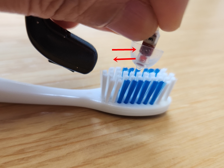 우선은 부드러운 천으로 보청기 외부를 잘 닦아주고 칫솔이나 보청기용 청소솔을 이용해서 귀지를 살살 털어주도록 합니다. 그리고 혹시 여분의 왁스가드를 가지고 있다면 완전히 새 필터로 교체를 해주는 것도 좋습니다.