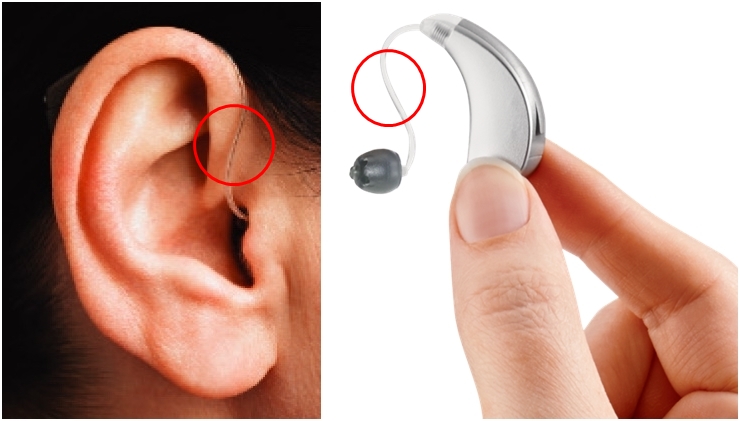 와이어 :오픈형 보청기의 경우에는 귀안으로 들어가는 리시버와 보청기 본체 사이에 얇은 와이어가 있습니다. 이 와이어는 보청기 앰프에서 증폭된 소리를 리시버로 전달해 주는 기능을 합니다. (귀걸이형은 조금 더 두꺼운 튜브가 보청기 본체와 이어몰드를 연결합니다.)