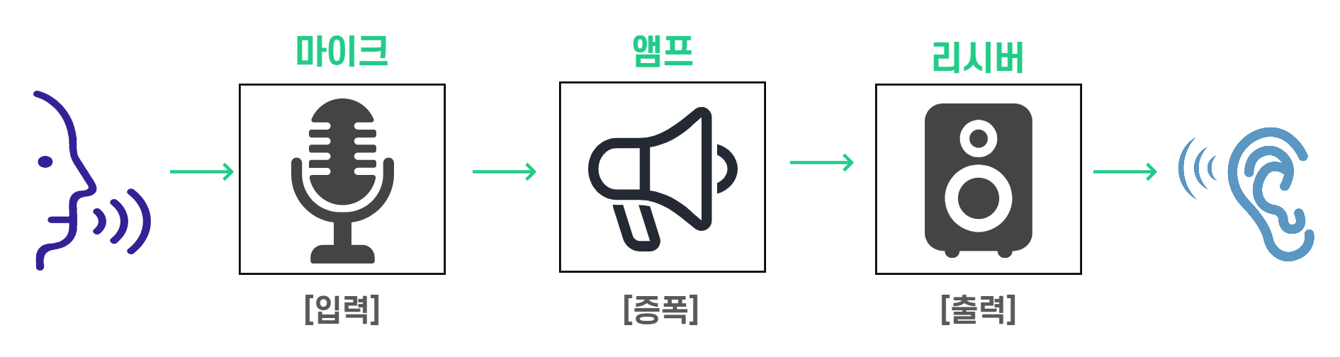 3. 리시버 : 마지막으로 중요한 부품인 리시버는 스피커의 또다른 명칭으로 증폭기를 통해 증폭된 전기신호를 다시 소리로 재생시켜 고막으로 전달하는 역할을 합니다. 즉, 증폭기에서 출력된 전기신호를 다시 원래의 소리로 바꿔주는 에너지 변환장치로 마이크와는 정반대의 기능을 하게 되는 것입니다.