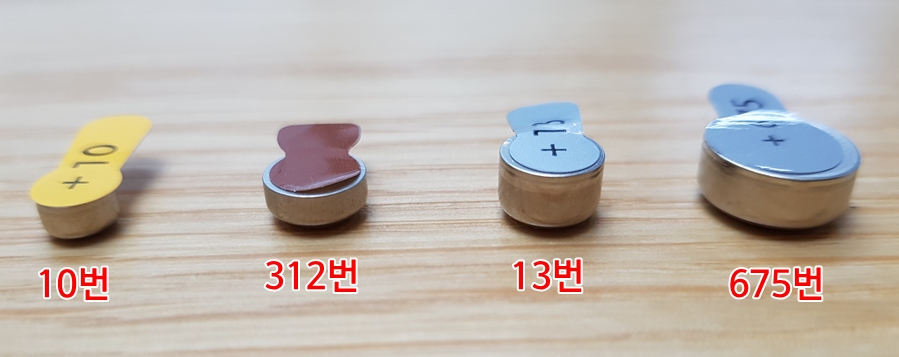 보청기의 배터리는 전세계 공통으로 10번, 312번, 13번, 675번 중 한 가지가 사용됩니다. 일반적으로 보청기의 배터리 수명은 3~20일 동안 지속되는데 이러한 수명은 배터리의 크기와 어떤 조건에서 사용하느냐에 따라 달라집니다.