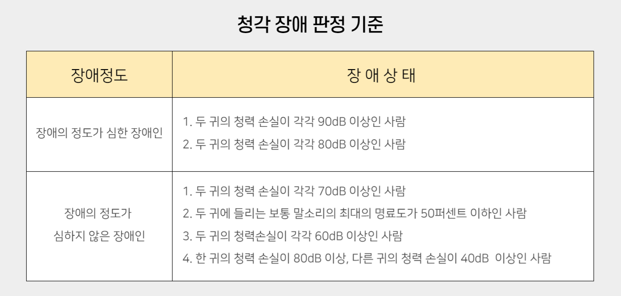 보청기 보조금은 청각장애로 등록이 되신 분에 한하여 5년에 한 번씩 보청기 한쪽 구입비용의 일부를 국가가 지원해 주는 제도입니다. 이때 중요한 것은 장애정도에 상관없이 반드시 청각장애인이어야 하며 한번 청각장애인으로 등록이 되면 이후로 계속해서 5년에 한번씩 한쪽 보청기에 대하여 지원이 된다는 점입니다.