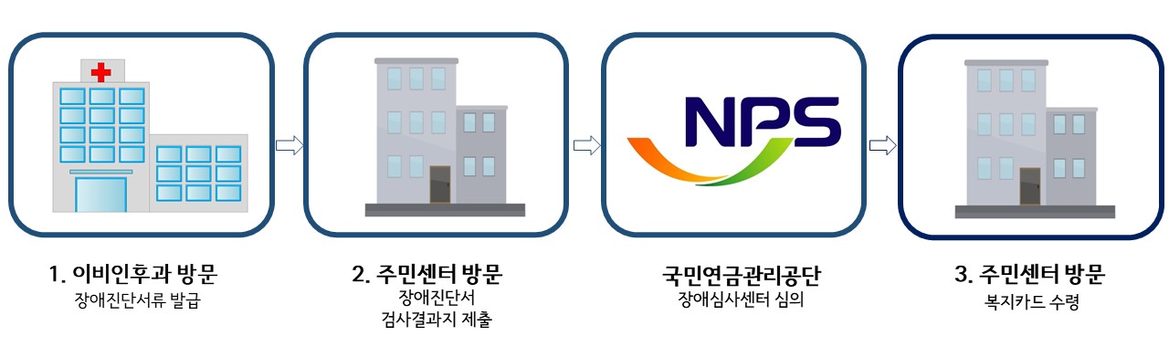④ 결과가 통보되면 주민센터를 방문하여 장애등록을 하고 복지카드를 받아옵니다.