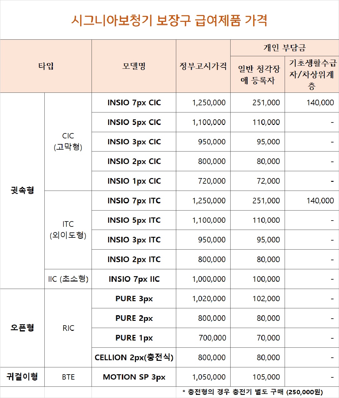 보청기 지원금으로 구입이 가능한 대표적인 모델은 아래와 같습니다.