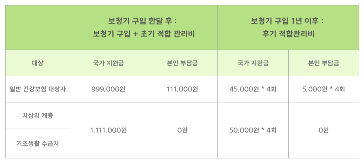 1. 보청기 지원금 (장애인 보장구 급여) 대상자 기준