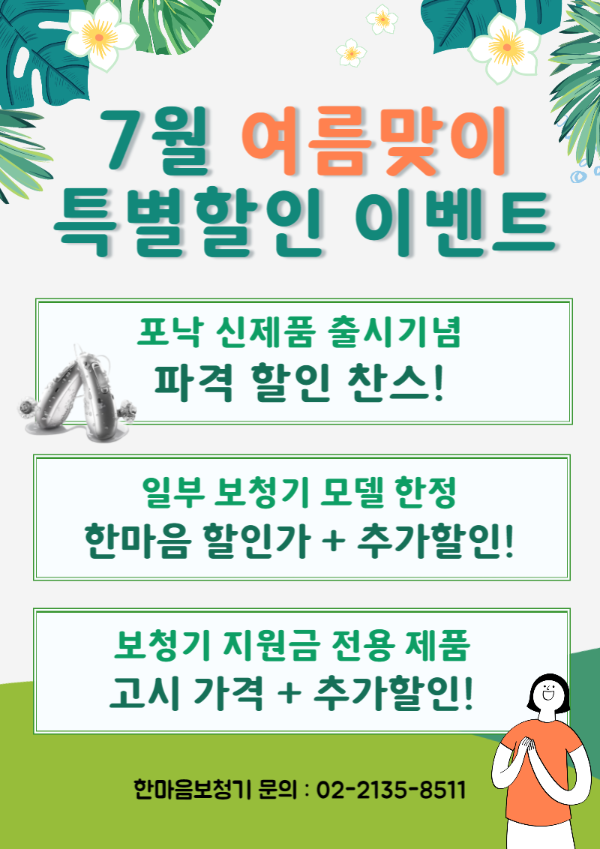 한마음 보청기의 50~70% 할인 가격과 함께 추가 할인까지 가능한 이번 여름 이벤트!