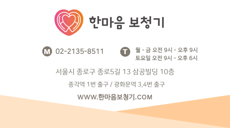 한마음보청기는 다양한 브랜드의 보청기를 전국에서 가장 합리적인 가격으로 판매하는 보청기 전문점입니다. 예약 후 방문하시면 정확한 청력검사와 함께 여러 브랜드의 보청기를 직접 체험하실 수 있으며 25년 경력의 보청기 전문가와 함께 가장 적합한 보청기를 선택하실 수 있습니다. 궁금한 점이 있으시다면 언제든 편안하게 연락 주세요~~