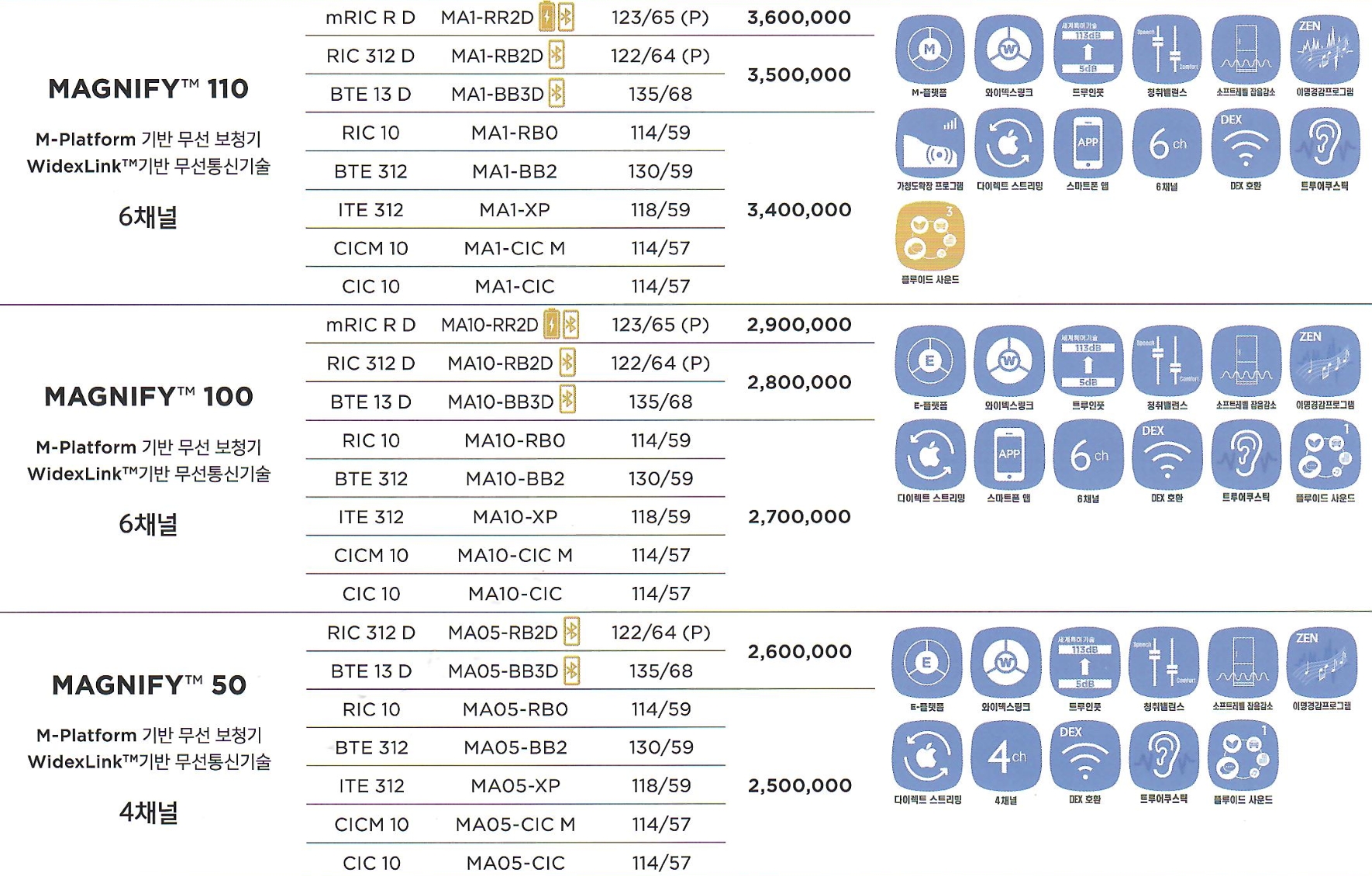 와이덱스 매그니파이 보청기는 모멘트와 똑같은 M-플랫폼을 사용하는 보청기로 모멘트의 우수한 기능을 대부분 포함하고 있지만 딱 한 가지 '퓨어사운드 기능'이 제외되면서 소비자 가격이 조금 더 낮게 출시가 된 모델입니다.
