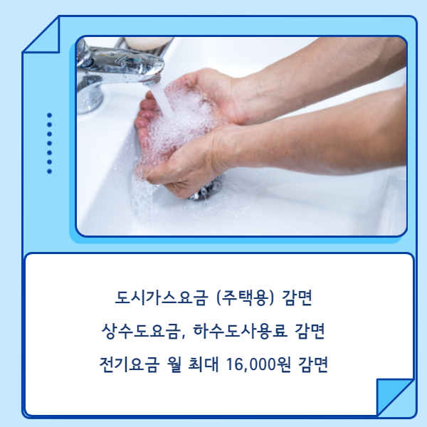 - 상수도요금, 하수도사용료 감면 : 읍면동 주민센터 문의