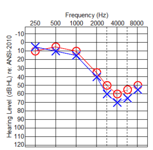 그리고 어느 정도 데시벨과 헤르츠의 소리를 들려주었을 때 소리가 들리는지를 함께 측정하면 각 귀의 청력 손실 정도를 파악할 수 있습니다.