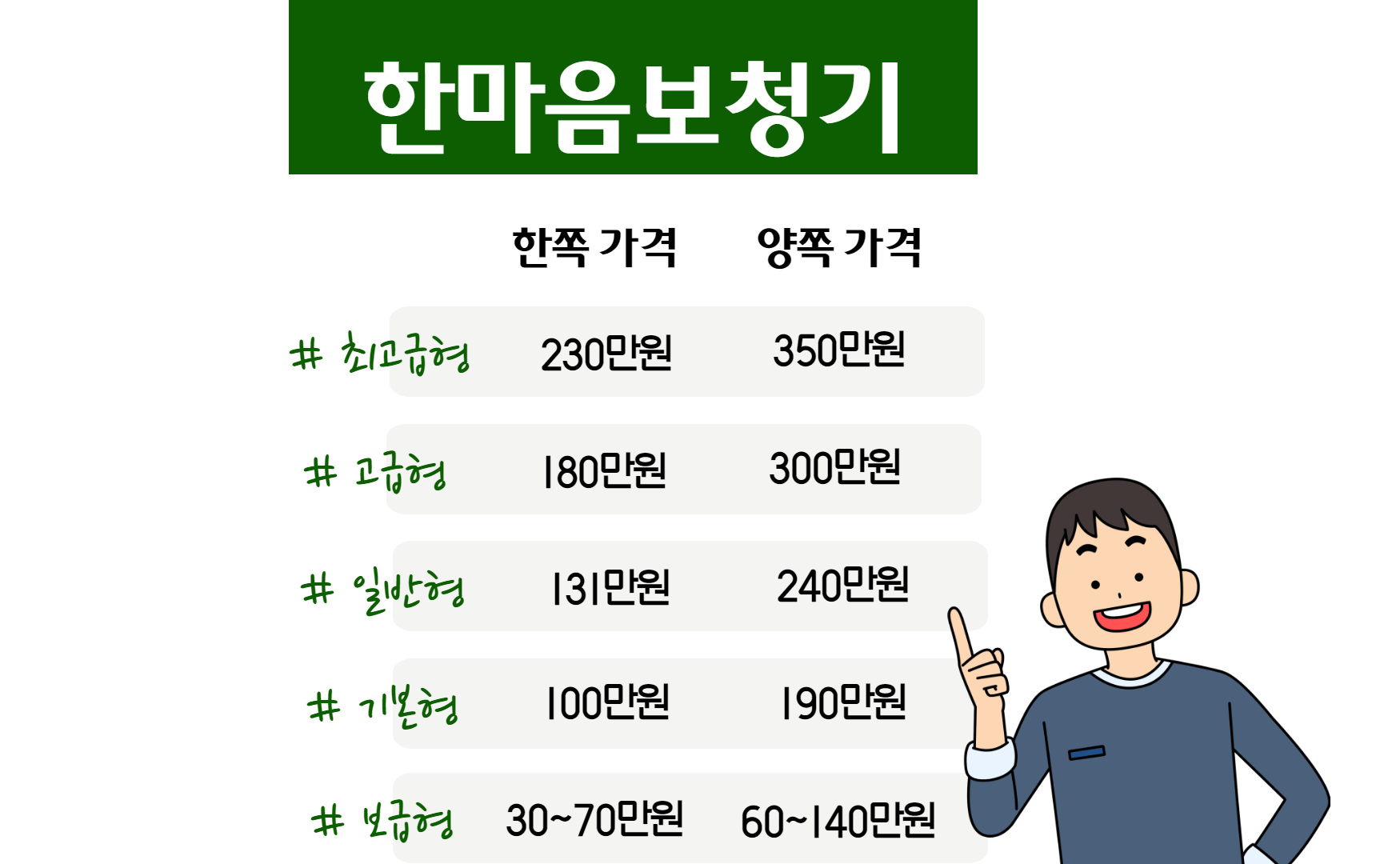 한마음보청기는 자세한 청력검사를 진행하고 검사 결과를 바탕으로 보청기를 착용하실 분에게 가장 적합한 보청기를 추천해 드립니다. 특히 다양한 브랜드를 취급하고 있어 직접 한자리에서 비교를 해보고 선택할 수 있으며 구입 이후 2달간 사용해 보시고 보청기가 맞지 않을 경우 다른 브랜드로 교환 또는 전액 반품도 보장해 드립니다.