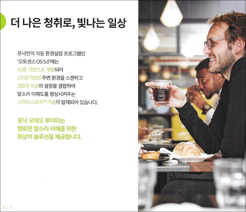 주변의 소리를 1초당 700번 분석하고 보청기의 프로그램을 실시간으로 자동 변경하여 최적의 청취환경을 제공하는 포낙의 오토센스 OS가 이번에 스마트스피치 기술을 탑재하면서 오토센스 OS 5.0으로 업그레이드 되었습니다.