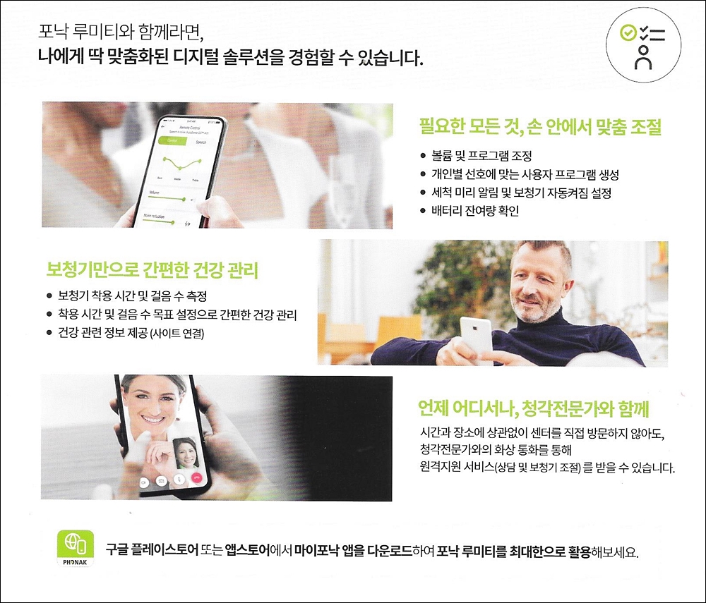 그리고 필요할 경우 청각전문가와 미리 서비스 예약을 한다면 시간과 장소에 상관 없이 원격으로서비스 지원도 받을 수 있습니다.