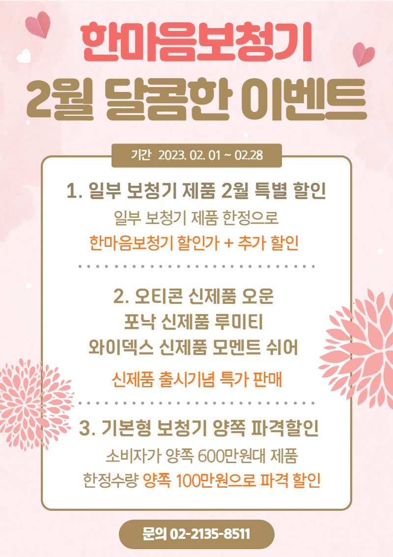 이상으로 종로 한마음보청기에서 준비한 2월 이벤트를 안내해 드렸습니다.
