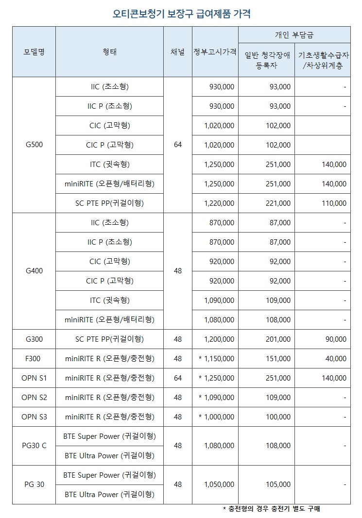 귀걸이형의 경우 10월까지는 PG30과 PG30 C 중에서만 선택이 가능했지만이번에 G300과 G500 모델이 추가되었고 가격에도 약간의 변동이 있었습니다.