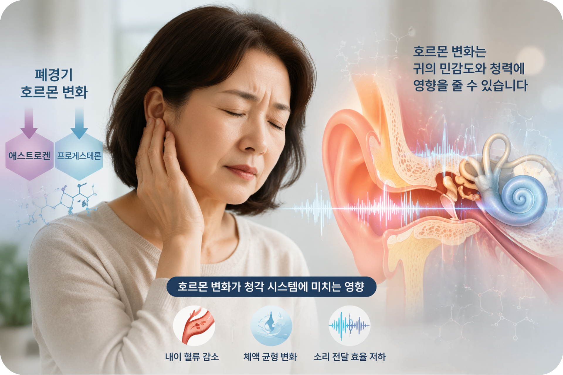 호르몬 변화로 인해 귀에서 나타나는 주요 증상들을 정리해 보았습니다.