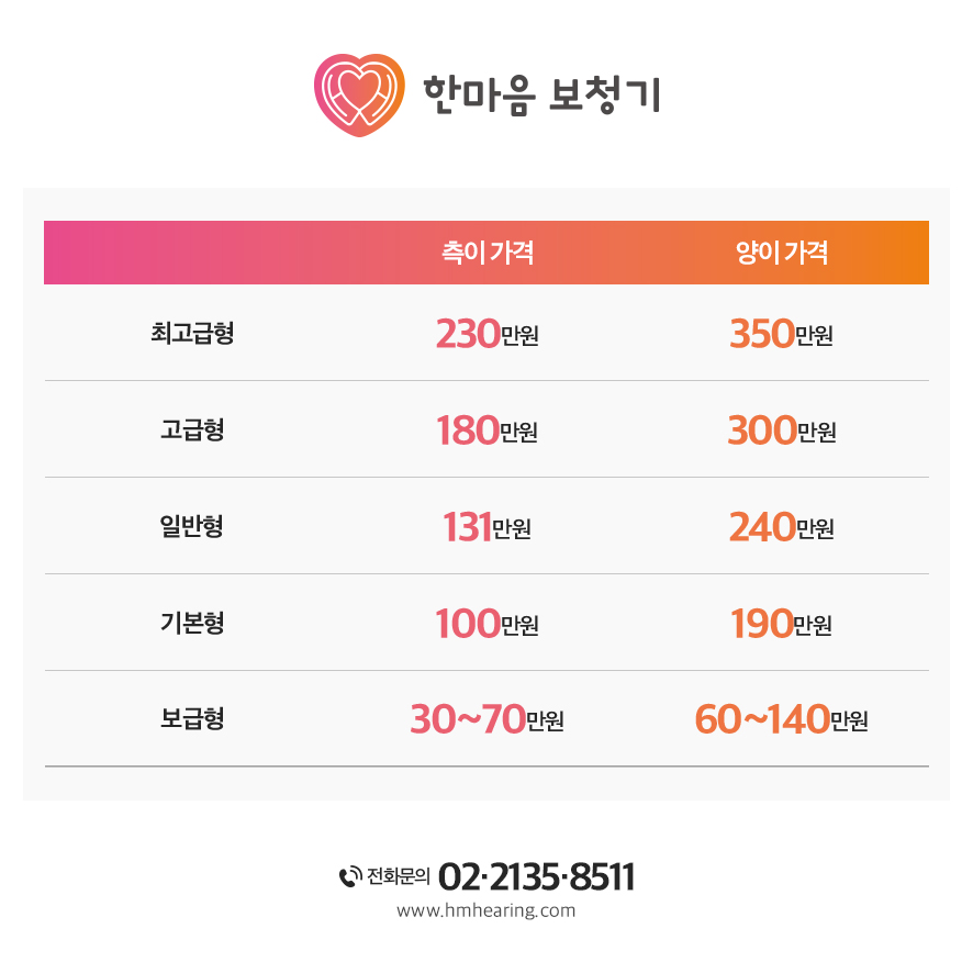 한마음보청기 가격 기준으로 기본형에 해당되는 보청기는
