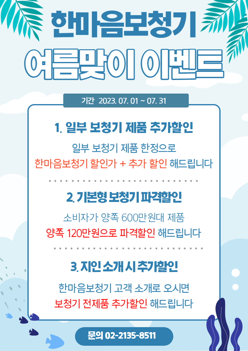 이번 7월에는 한마음보청기를 주변 지인께도 소개 부탁드립니다~